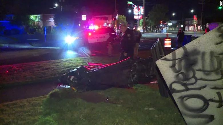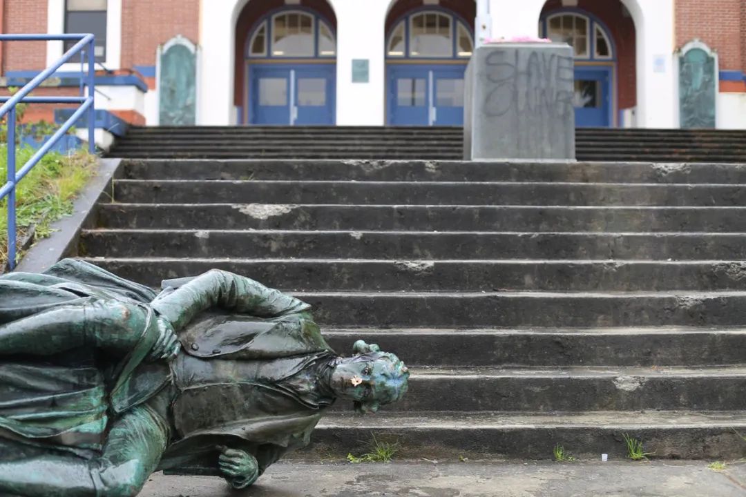 **▲**北波特蘭傑斐遜中學門前美國開國元勳托馬斯·傑斐遜雕像也慘遭毒手。