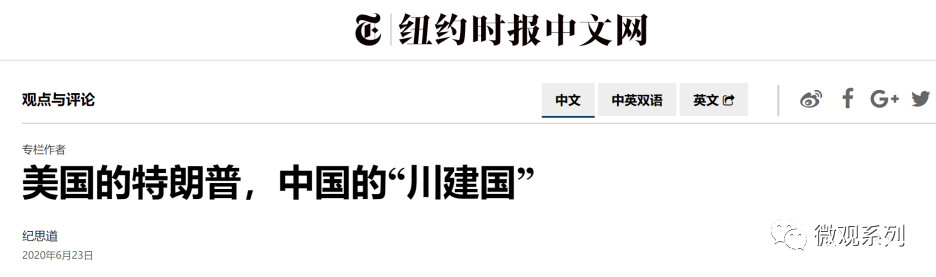 他這篇最新文章《美國的特朗普,中國的川建國》也一樣,他很清楚中國人民喜愛特朗普,於是把這件事暴露出來,還大談中國網民給特朗普取的綽號“川建國”,就是在中國人眼裏,特朗普是一個多麼熱愛中國,多麼為中國利益着想的美國總統。
