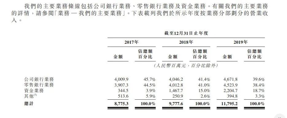 而2018年,公司銀行業務、零售銀行業務營收佔比均略超過40%,分別為41.4%、41%。