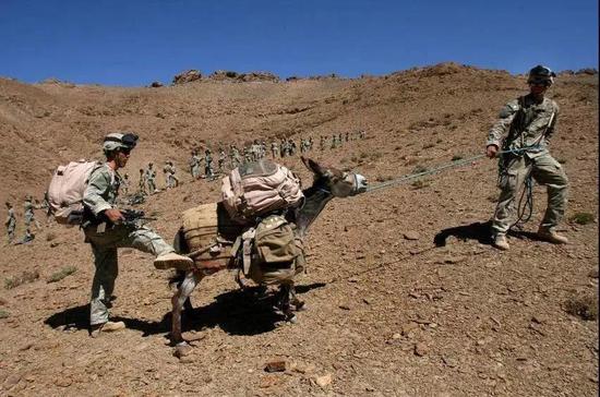 所以在戰爭爆發之前,美軍就提前收集了20萬頭毛驢,在與阿富汗地形相似的內華達山脈建立了毛驢學校,集中培訓美軍騎驢。這才有了美國大兵和驢一起打仗的風趣場面。