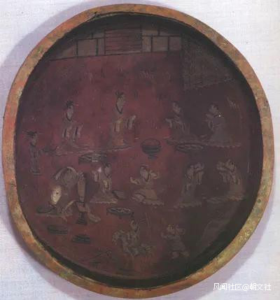 而這些精美的漆器,更成了三國曆史生活的“活字典”。就以“漆槅”來説,朱然墓出土的,是包括了漆碗、漆案、漆匕在內的組合餐具,恰證明了三國時代上層宴會上的“分食”制度。漆案上的“梳妝圖”,生動還原了三國貴族婦女的梳妝現場。“宮闈宴樂圖”漆案則再現了東吳王宮觀看“百戲”的場面。“童子對棍圖”漆盤濃縮了三國兒童的童趣遊戲,“季札掛劍圖漆盤”上的狩獵場面,更是對“三國英雄”們休閒生活的還原。