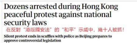 英國《衞報》:因反對“港版國安法”,香港示威者又被抓!