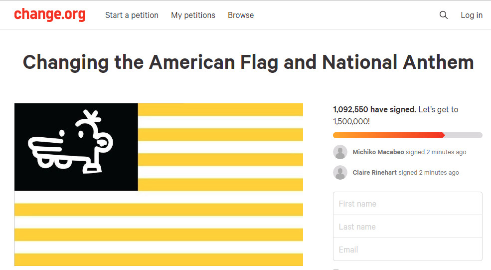 香港新網網6月29日電美國反種族歧視的抗議浪潮仍未平息。為聲援“黑人的命也是命”運動,當地時間25日,有人在美國change.org網站上發起了“更改美國國旗和國歌”的請願,兩天內已得到上百萬網民的支持。
