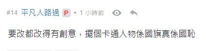 有人直言要改也得改得有創意,弄個卡通人物在國旗上真是國恥。
