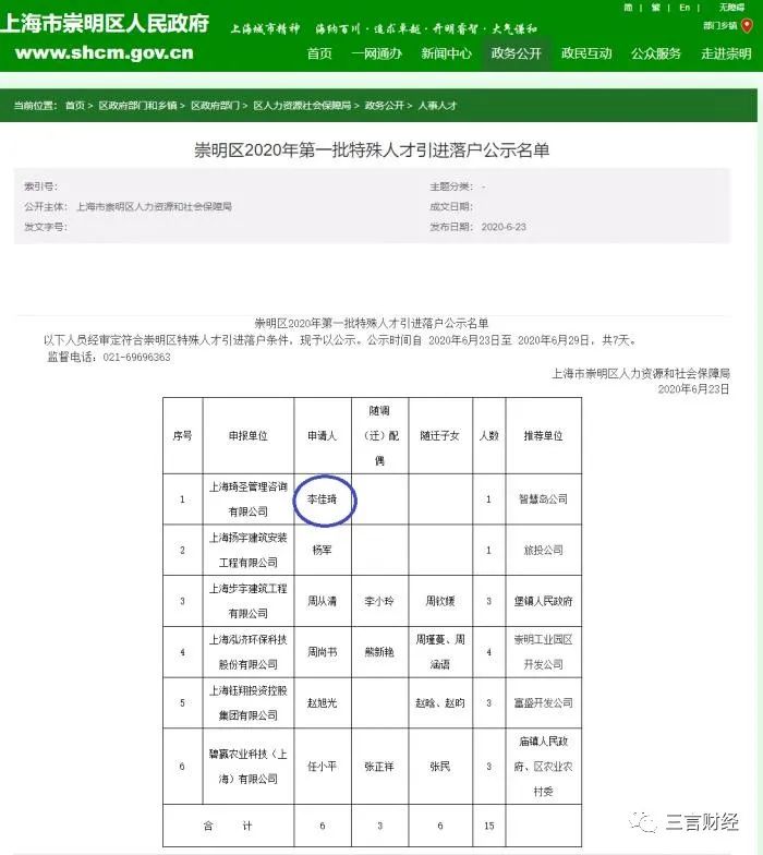 作者" alt=“500” /> 6月23日,上海市崇明區人社局公佈《崇明區2020年第一批特殊人才引進落户公示名單》,公示信息顯示:以下人員經審定符合崇明區特殊人才引進落户條件,予以公示。公示時間自 2020年6月23日至 2020年6月29日,共7天。