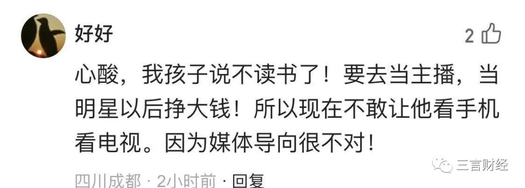 部分網友表示,這是投機倒把。價值觀出了問題。“這是叫我們都去帶貨的意思嗎?孩子説不讀書要去當主播。”