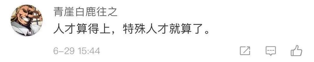 “這叫特殊人才,對國家作貢獻的人才配得上。”
