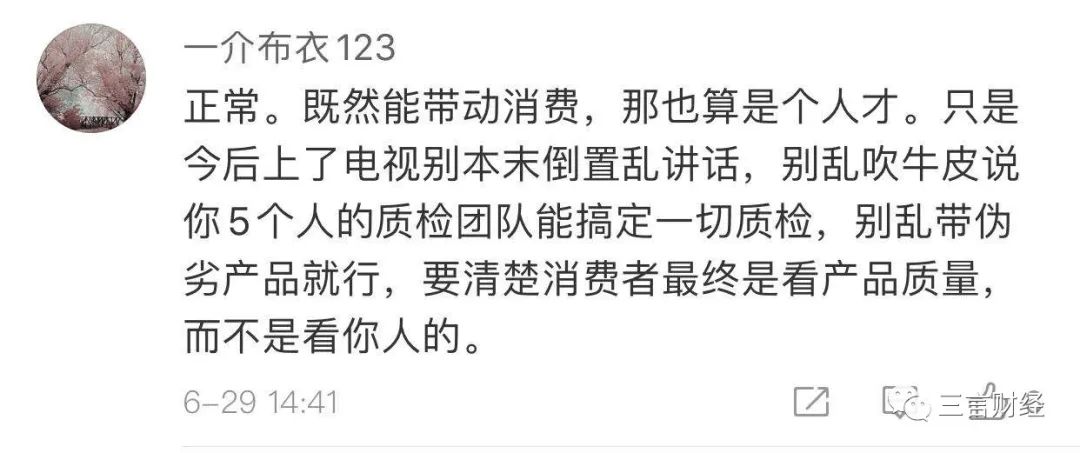 還有人認為,能帶動消費算是人才,但是希望李佳琦以後上電視不要在本末倒置亂講話,消費者看的是產品質量,不是他這個人。