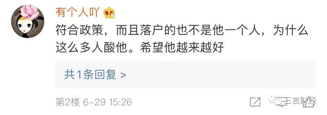 網友表示,符合政策落户的也不是他一個人,為什麼那麼多人酸他。