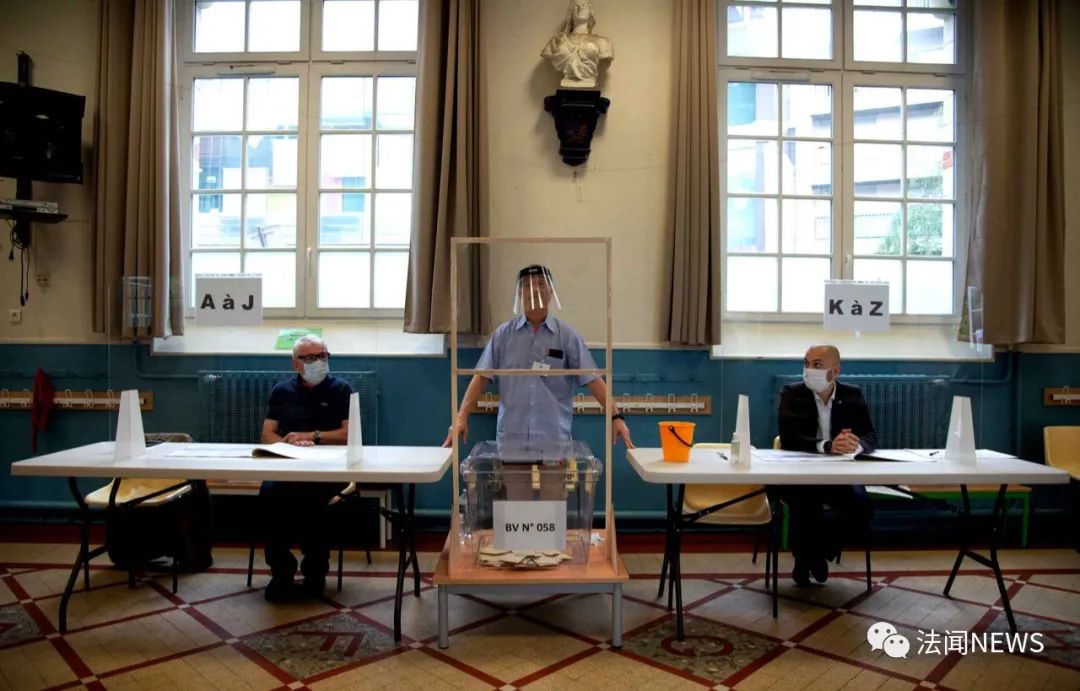 ▵ 6 月 28 日週日巴黎 15 區的一個投票站,因新冠疫情影響,距離第一輪選舉中斷 3 個月後,儘管採取了全面的衞生防護措施,在第二輪市政選舉再次出現了創紀錄的棄權率,約為 60%。