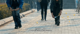 人們跑進鏡頭,人們跑了出去。