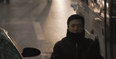 電影中有一段,老張騎電動車回家,在塵土和尾氣中,他把衣領拉得老高也還是遮擋不住。