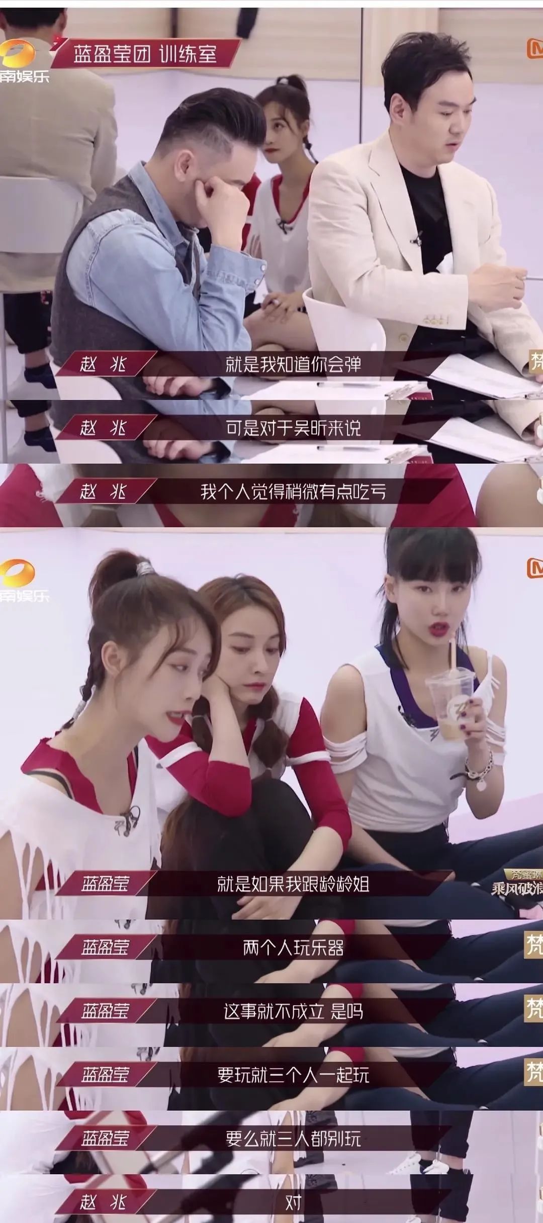 話已經很直白了,可藍盈瑩沒有聽進去,又提出她和黃齡兩個人玩樂器,讓吳昕作為主唱。