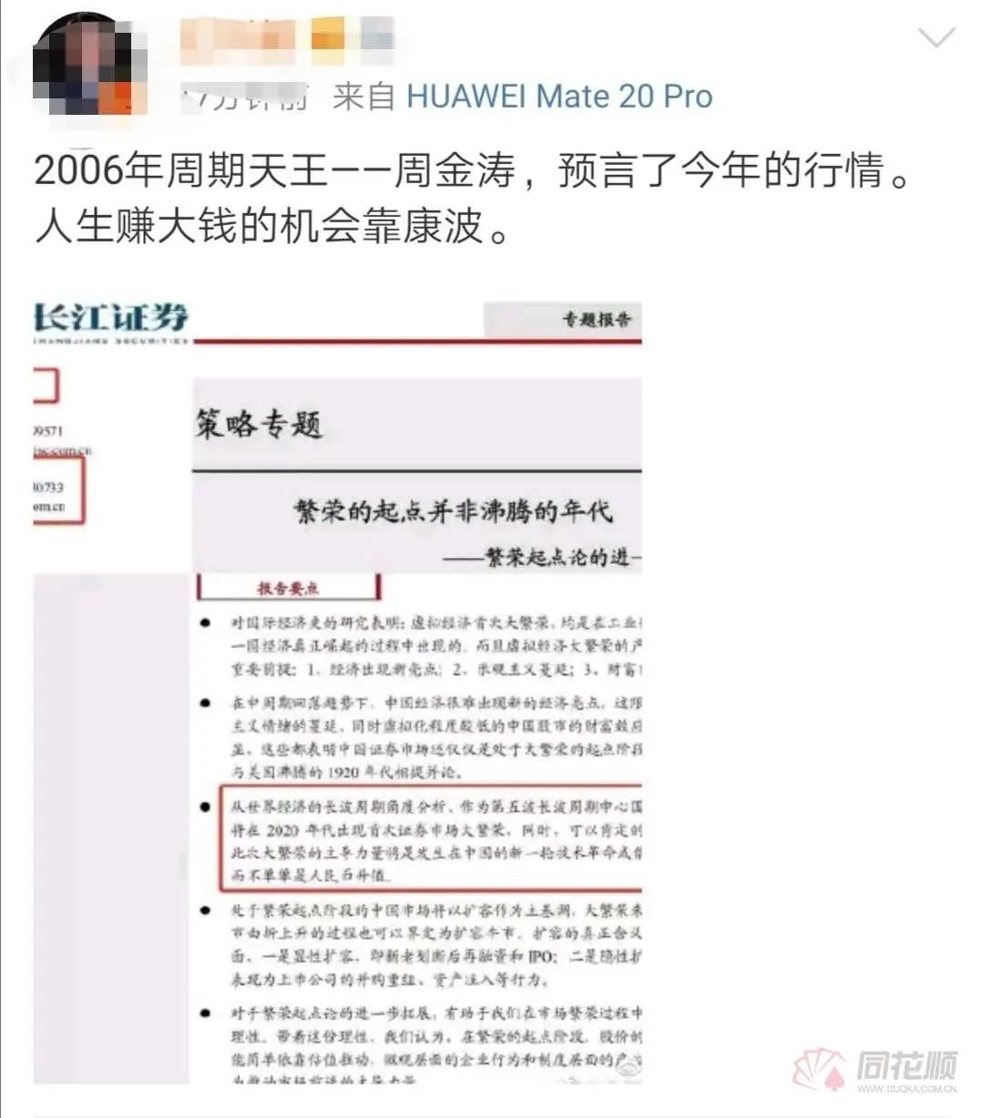 用周金濤的理論來説,叫做“人生髮財靠康波”。