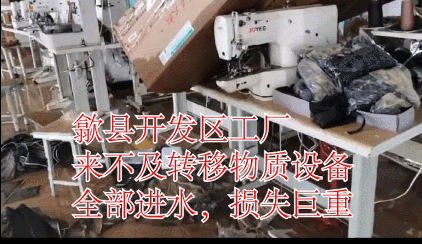 洪水退去後,歙縣縣城內沿街店鋪、開發區工廠等一片狼藉。工廠中來不及轉移的物資設備全部進水,損失慘重。