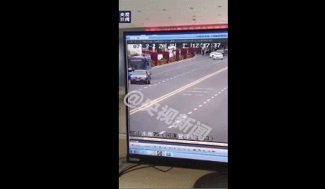 它先是用接近於停止的速度,緩慢行駛了近一分鐘,隨後在路面沒有車輛的時候,猛然被左打了方向盤。
