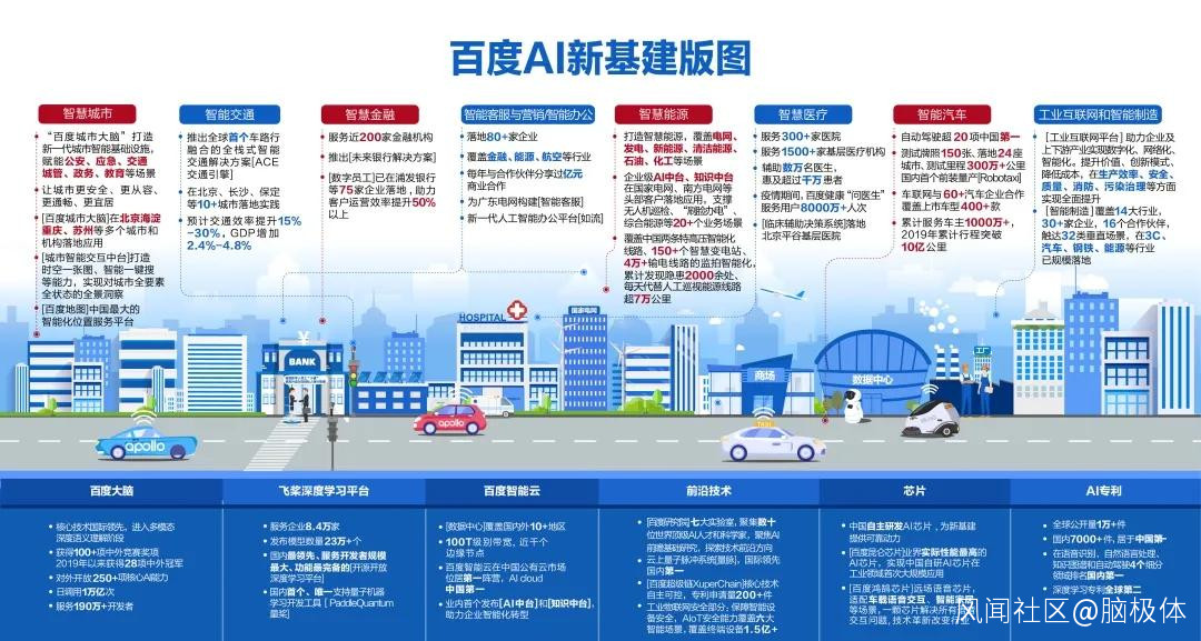從2017年百度整合AIG開始,百度大腦連年經歷大規模升級,成為在技術前沿化、能力數量、產業覆蓋廣度上全面領先的AI開放平台,形成了AI工業化大生產底座;飛槳成為了中國首個也是目前國內唯一開源開放、功能完備的深度學習平台。百度Apollo和小度助手,也在自動駕駛與對話式AI領域完成了平台化與生態化的建設,成為相關領域無數開發者與合作伙伴通向未來的抓手。