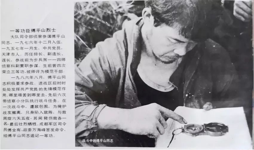 傅平山是天津塘沽人,1977年1月入伍,由於他身體強壯,腦子靈活,簡直天生就是當偵察兵的料,很快就從同年兵中脱穎而出,歷任排長、偵察連連長,四次榮立三等功,最後被選拔至38軍114師偵察科任副營職偵察參謀。