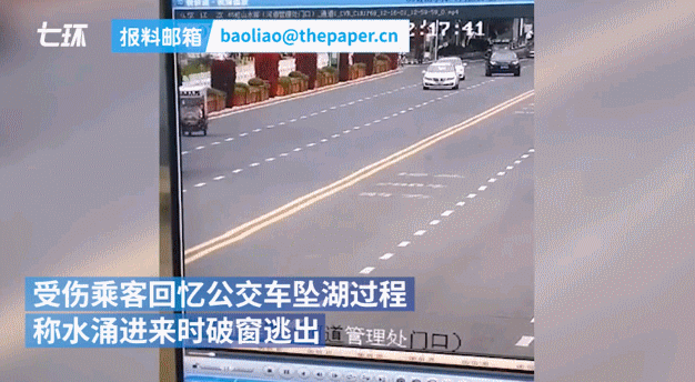 之後公交車撞向欄杆,車上的玻璃全部撞碎,墜入湖裏後一下子就被水淹沒。