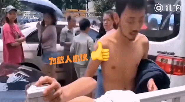 一位跑腿小哥看到事故發生,立刻放下手中的菜,和同村的老百姓拿來繩子,互相拉着潛入水中救援。