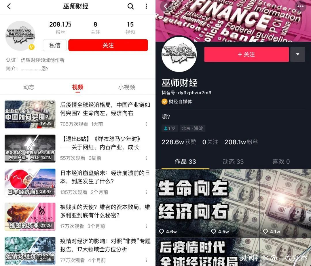被重金挖走的巫師財經已經在西瓜視頻發佈第一支獨家內容,但其入駐抖音僅一週時間,僅憑 33 條視頻便積累了208 萬粉絲,增速不可謂不快。