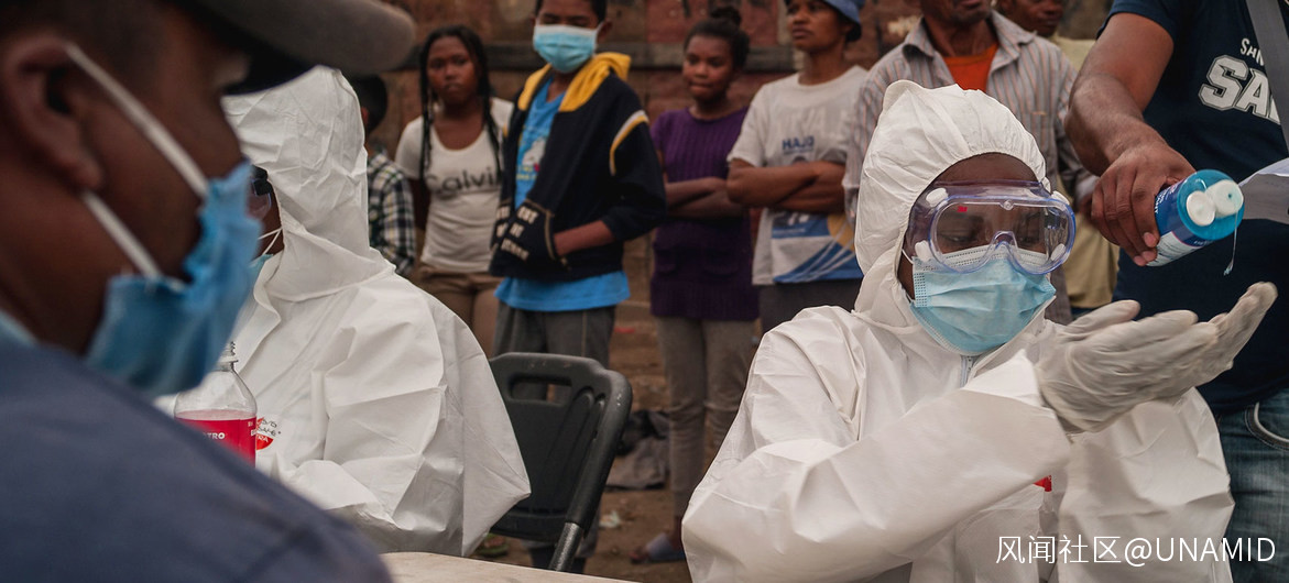 馬達加斯加的衞生工作者對一些公民進行新冠病毒檢測。