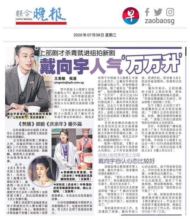 戴向宇不負眾望,頻頻熱搜,就連外媒更是報道火熱,更有來自新加坡、馬來西亞等地的劇迷“漂洋過海”送祝福。