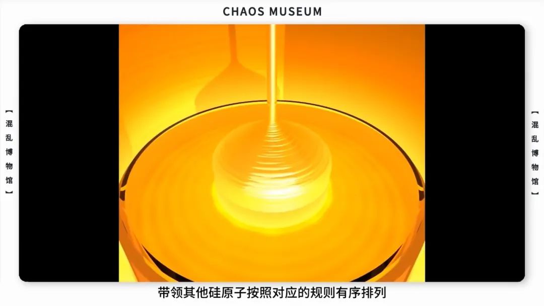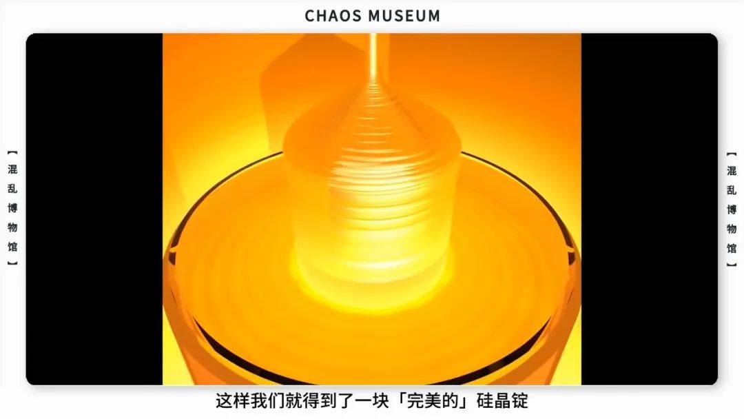 然後,將這根棒子緩慢地向上提拉,同時進行旋轉。晶種會像領頭羊一樣帶領其他硅原子按照對應的規則有序排列。這樣我們就得到了一塊「完美的」硅晶錠。