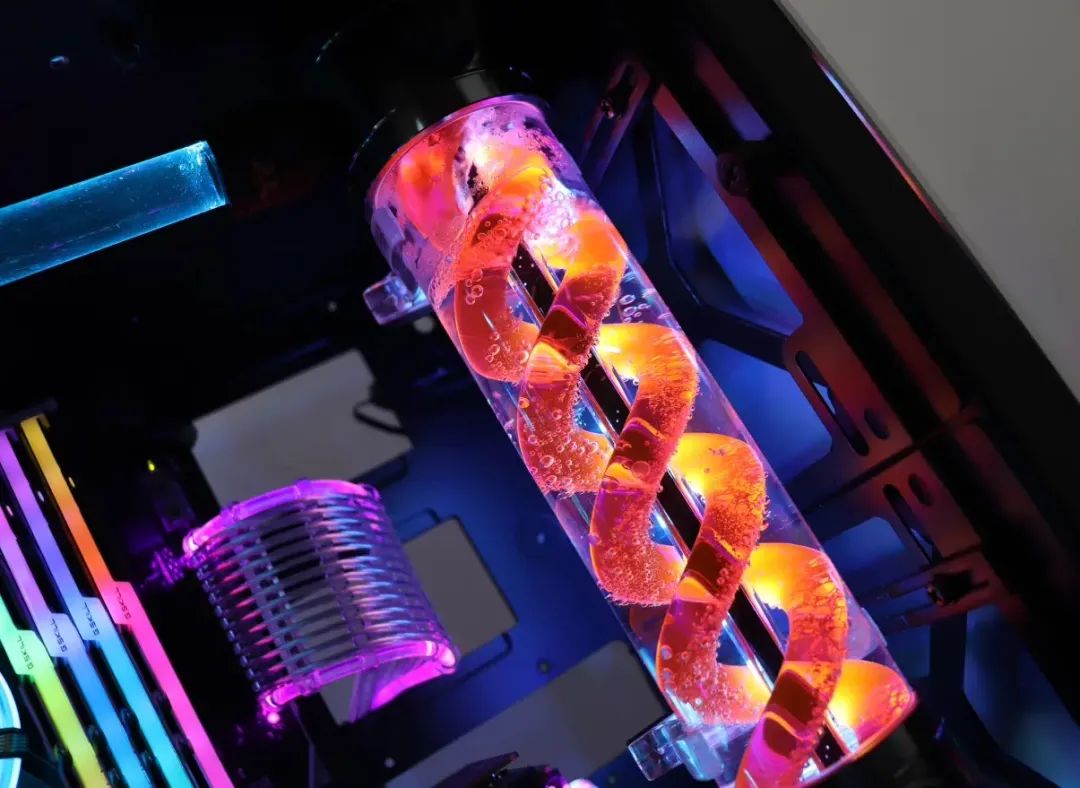 小編腦海中閃過的其實是下面這種水冷機箱,長得那麼像冷凝管,散熱能力肯定不俗。手機如果用上了,那肯定打啥遊戲都不帶燙手的。