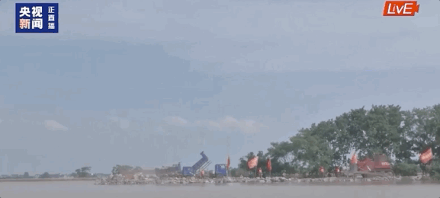 經過連日的封堵施工,截至12日17時許,快一半的缺口已被填補住。然而,由於決堤處的龍口變窄,流速變快,填補工作越是到中間越難。目前已進入最焦灼的攻堅階段。