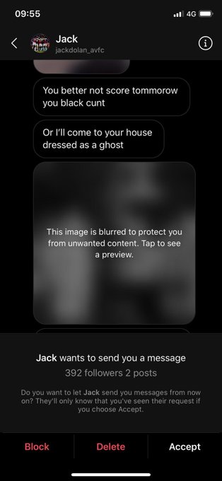 12日,現效力於英超水晶宮隊的黑人前鋒扎哈發佈推文稱,在與阿斯頓維拉(簡稱維拉)比賽前收到了一名12歲孩子的種族主義恐嚇信息。