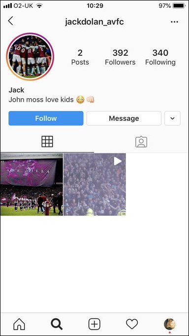 從孩子的社交媒體截圖可以看出,他是一名維拉球迷。