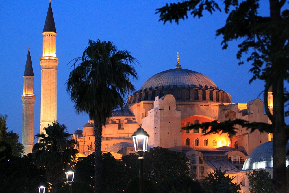 1453年,穆斯林大軍征服君士坦丁堡,結束了基督教文明主導這裏1000多年的歷史。征服者麥麥德率人騎馬走進索菲亞大教堂,一到這裏,立刻下馬,四體伏地,讚美安拉,並下令把索菲亞大教堂改為清真寺。在很長時間裏,這是伊斯蘭世界最重要的清真寺,甚至成為清真寺建築的範本,影響隨處可見,包括與索菲亞大教堂隔着廣場相望的藍色清真寺。