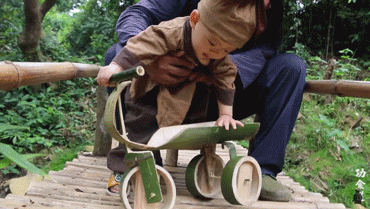 就像是孫子專屬的機器貓,阿木爺爺這一手絕活,給了孫兒一個獨一無二的童年。除了上面那些,還有爬單槓的小木人、竹喇叭、鳥哨……
