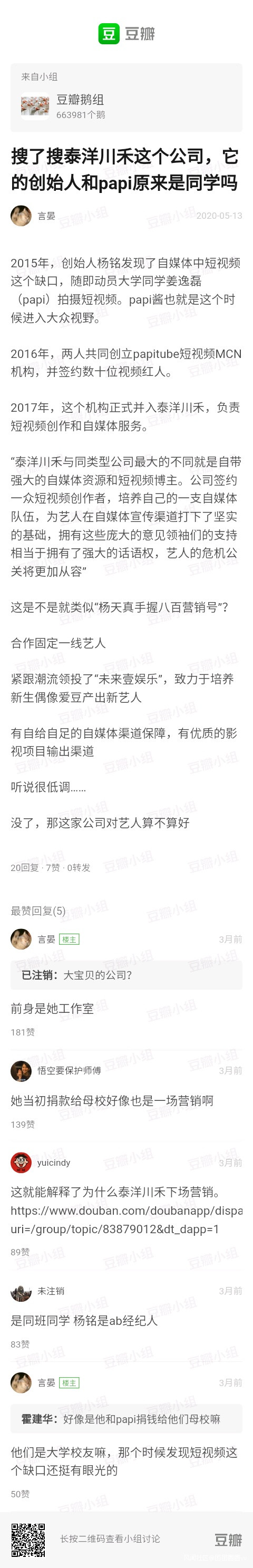 http://t.cn/A6AgYwTP 天眼查可發現 papi醬的公司 泰洋川禾和觀察者網的關係