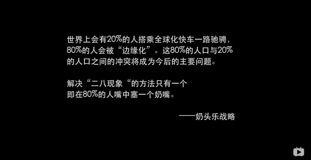 解決“二八現象”的方法只有一個,即在80%的人嘴中塞一個奶嘴。