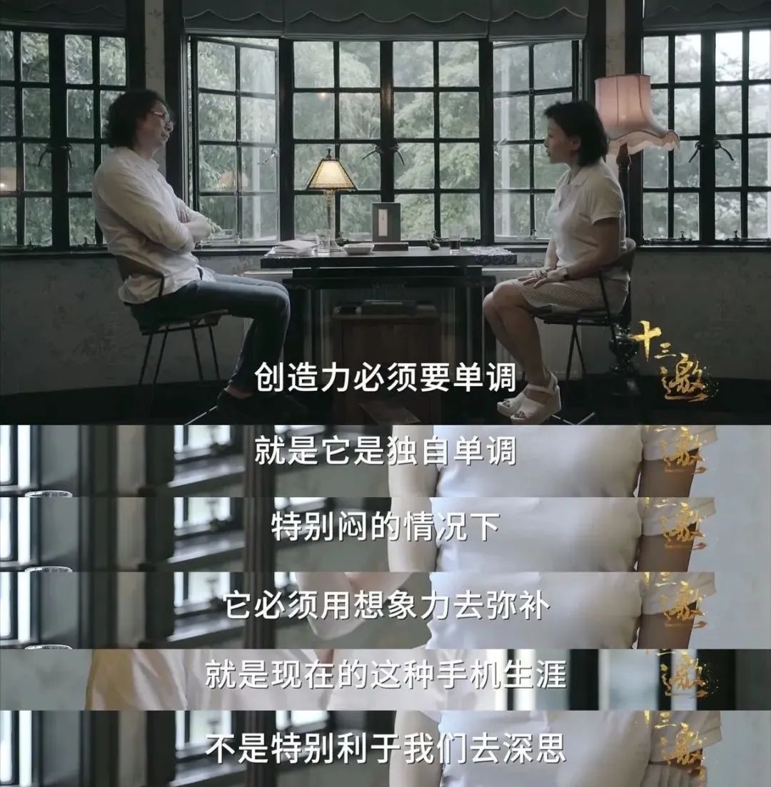 “創造力必須要單調,就是它是在獨自單調,特別悶的情況下,它必須用想象力去彌補。”