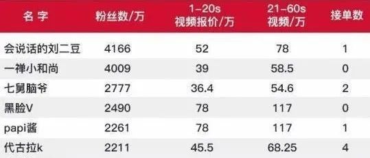 一份去年抖音網紅報價單顯示,單支廣告視頻報價已逾百萬。