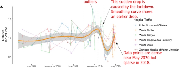 最新論文作者表示,最隱蔽的問題來自於統計分析方法。他們指出,前文“胡亂”解讀LOESS曲線,從而讓醫院車流量峯值提前出現。