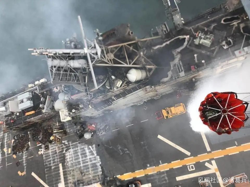 兩棲裝備和艦船最忌諱的就是漏水,海鹽會迅速腐蝕各種機械零件和電子元件,美軍在搶救這艘船時向艦體淋噴了大量海水,可能一些沒有被大火殃及的艙室和設備也被海水淋壞了。