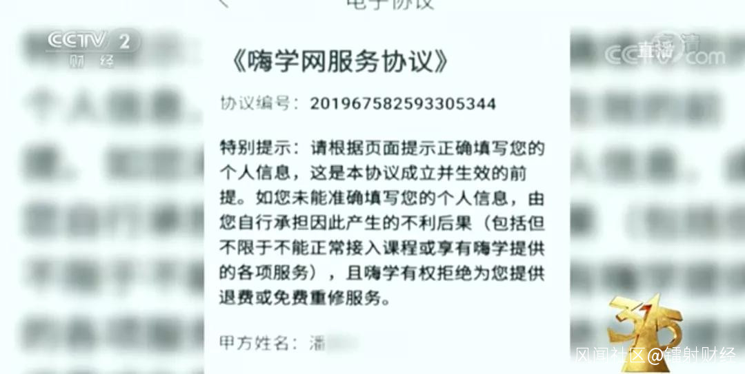 在“教育”方面,嗨學網因退費難,銷售當面説一套,協議背後籤一套被關注。