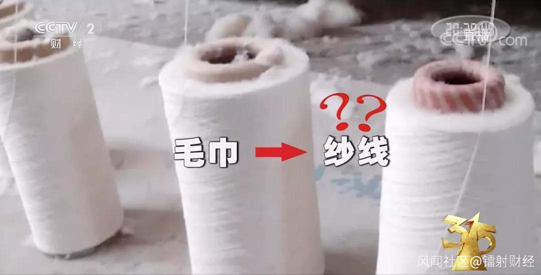 報道稱,這種紗線的原料,竟然有一些是舊襪子、舊內衣、舊衣服,這些被加工好的“再生棉”沒有標註任何產品信息及警示語,就賣到紗線廠做成了紗線,紗線上同樣也不標註產品信息及警示語,就賣給了毛巾廠,最終做成毛巾。