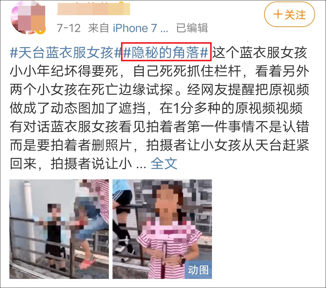 女孩天台玩耍被勸阻後奪手機引發熱議 拍攝者回應:網絡部分言論存在誤讀_風聞
