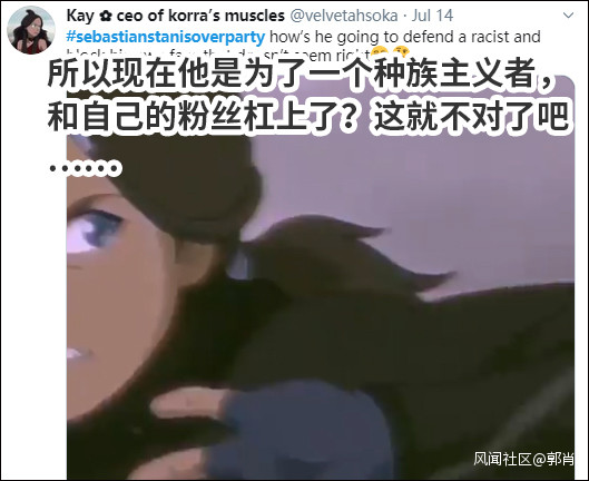 這下,大家不開心了。隨後,一些網友發起了 #塞巴斯蒂安涼涼(#sebastianstanisoverparty)的話題,開始抵制塞巴斯蒂安和其女友:“你女朋友種族歧視還不讓人説了?看來你也種族歧視……”