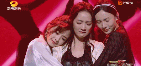 而當孟佳組表演完,一直頂着壓力的孟佳抱着兩個姐妹不能自控地哭。