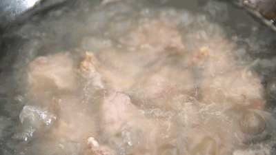 2、低温鹽水去除腥臭排骨清洗乾淨後,放入冷鹽(少量)水鍋中,以最小火煮約5分鐘,可發現整鍋水因肉中的血水滲出而泛紅,且上面還浮着一層雜質,聞起來有腥味,但肉還是很生,可如此換水數次,直到肉的腥味去除,即可進行烹飪。