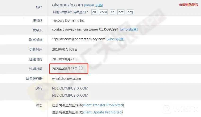 在查詢Olympusfx的網站信息時發現,該網站將於2020年8月23日過期。