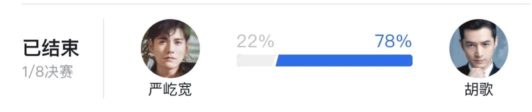 除了在決賽,稍微有遇到一點狙擊,以60%比40%這相對接近的票數贏胡歌之外,其他基本上可以説是吊打。