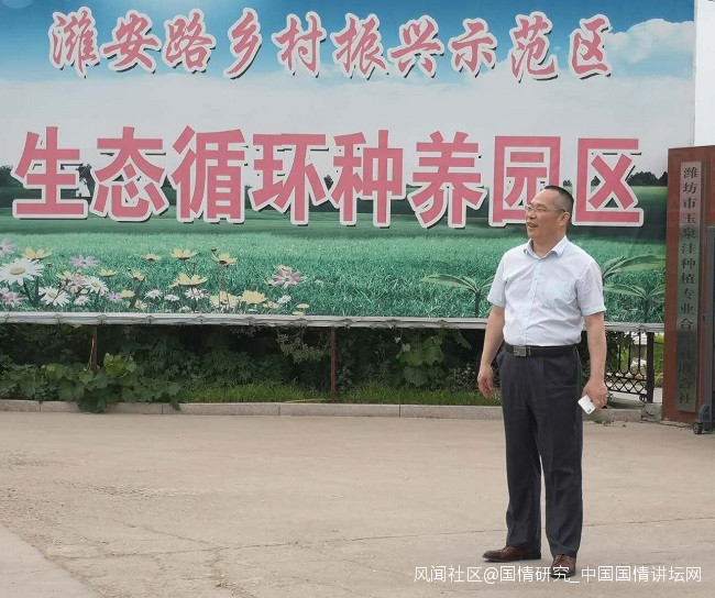 圖示:萬祥軍主任在山東濰坊玉泉窪種植專業合作社董事長劉向東的陪同下調研考察濰安路鄉村振興示範區生態循環種養園區。