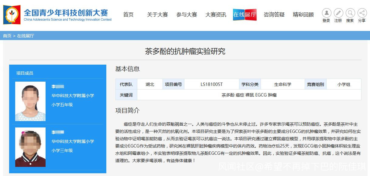 又有2名武漢小學生研究喝茶抗癌獲全國大獎,官方調查中_風聞
